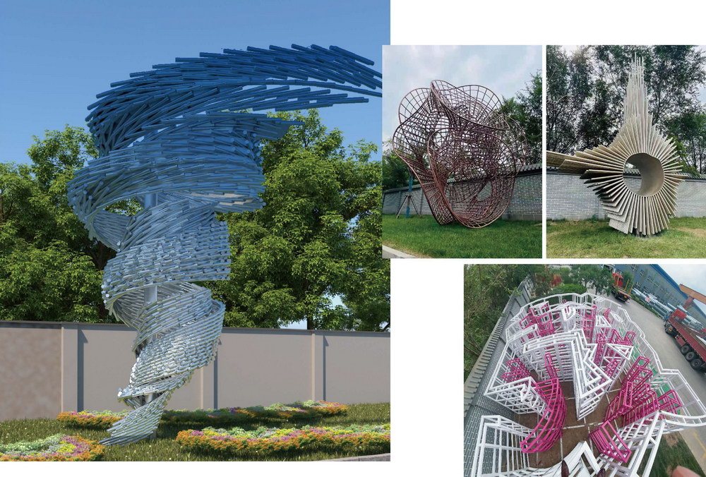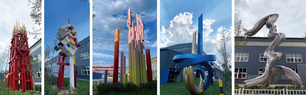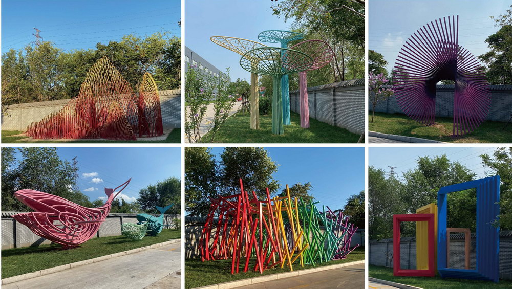 天津友發(fā)集團-鋼管藝術長廊群雕塑《綠水青山》《蒸蒸日上》《鋼管旋律》《魚之樂》《時光隧道》《任意門》